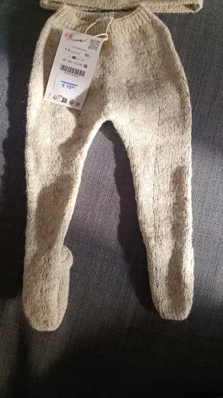 Completo per neonato in maglia, taglia 1-3 mesi. - Colore beige mélange. - Piedi integrati.