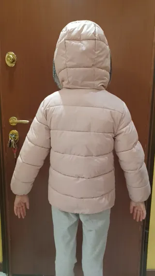 Giacca imbottita da bambina, colore rosa, con cappuccio bordato in pelliccia sintetica. - Chiusura con zip frontale. - Tasche laterali con zip. - Polsini elasticizzati.