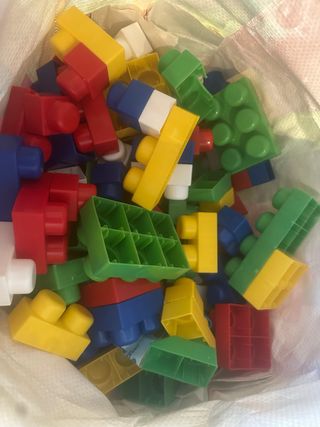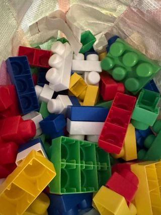 Set di blocchi da costruzione colorati per bambini, ideali per stimolare la creatività. - Blocchi di varie forme e dimensioni. - Colori vivaci: rosso, giallo, blu e verde. - Materiale plastico resistente. più di 100 pezzi