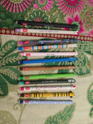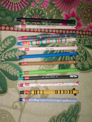 Set di 12 penne cancellabili Legami con fantasie e scritte diverse. - BE CURIOUS - DON'T WORRY BE HOPPY - BLOOM YOUR OWN WAY - NO PROBLEMA - THINK PINK - SHARK ATTACK - DREAM BIG - ROOARRR! - ALWAYS COOL - BELIEVE IN MAGIC - BEE DIFFERENT - HIPPO HOORAY!