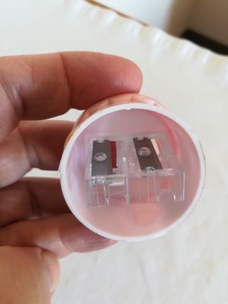Set di due temperamatite a forma di giostra, uno azzurro e uno rosa. - Design con animali stilizzati e stelle. - Base decorativa a forma di nuvole. - Tetto a cono decorato. - A due fori - Apribili per la pulizia - Non adatto a bambini inferiori a 3 anni d'età - Materiale: plastica