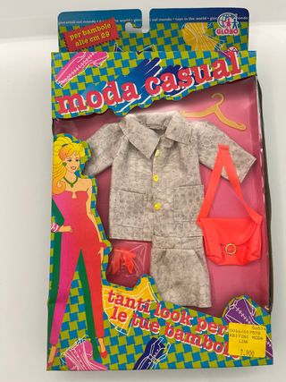 Set di abiti Moda Casual per bambole alte circa 29 cm, marca Globo. Perfetto per creare tanti look. - Completo giacca e gonna. - Borsa a tracolla arancione. - Scarpe rosa. - Gruccia gialla.