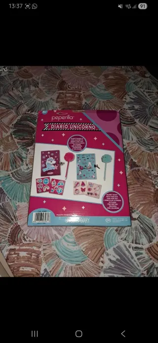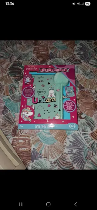 Diario segreto a tema unicorno, marca Peperilla. Include una penna con pompon. - Copertina turchese con dettagli arcobaleno e unicorno. - Pagine interne con disegni a tema. - Età consigliata: 5+.