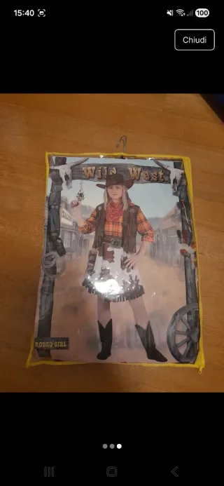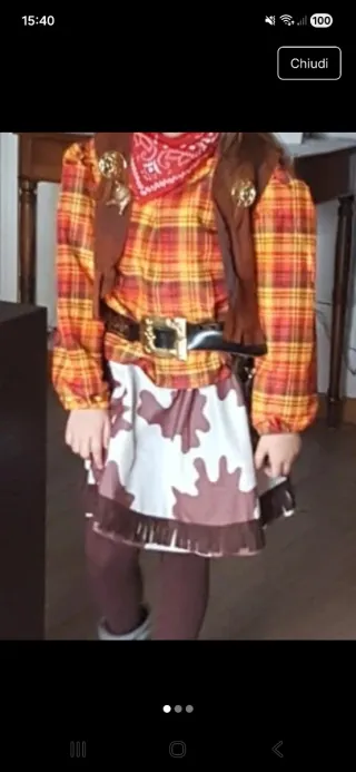 Costume da bambina a tema Wild West, perfetto per il carnevale o feste a tema. - Include cappello, camicia, gilet, gonna e stivali. - Design ispirato al Far West.