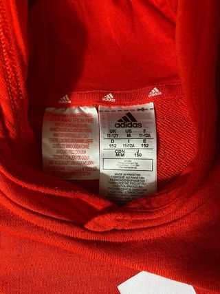 Felpa con cappuccio Adidas da bambino, colore rosso vivace. Presenta il logo Adidas bianco a contrasto sul petto e una comoda tasca a marsupio. - Cappuccio integrato. - Polsini e fondo a costine. - Logo Adidas stampato.