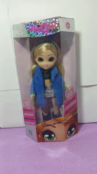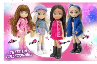 Set di 4 bambole Unique, Magic Eyes con occhi grandi e dettagliati, che ti seguono con lo sguardo. Ogni bambola ha un outfit unico e alla moda con accessori fashion inclusi. - Bambola con cappotto rosa e capelli castani nome Sophia. - Bambola con vestito rosa e capelli neri, la nuova new entry Victoria. - Bambola con giacca blu e gonna argentata e capelli biondi, nome Amy - Bambola con camicia di jeans minigonna e stivali azzurri di nome Rebecca