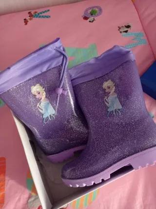 Stivaletti da pioggia per bambina a tema Elsa di Frozen. - Taglia 29. - Colore viola glitterato. - Personaggio Elsa stampato. - Mai indossati.