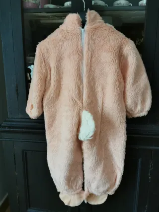 Morbido costume da coniglietta rosa per neonato, perfetto per il carnevale o feste a tema. Il costume è realizzato in tessuto peluche e presenta un cappuccio con orecchie lunghe e un musetto. - Tessuto peluche rosa. - Cappuccio con dettagli da coniglietta. - Chiusura frontale con bottoni.