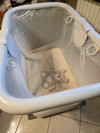 Box per neonati Brevi, ideale per i primi mesi del tuo bambino. Presenta un design moderno e funzionale. - Rete traspirante sui lati. - Materassino con simpatico disegno di orsetto. - Maniglie interne per aiutare il bambino ad alzarsi. Utilizzato poco, in ottimo stato. Unico difetto due macchioline sulla rete.