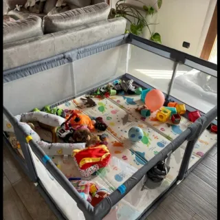 Box Giordani Easy Play Deluxe PARI AL NUOVO Vendo box Giordani Easy Play Deluxe, usato pochissimo (solo qualche volta), in condizioni ottime, praticamente come nuovo. Ideale per la casa o quando serve uno spazio sicuro per il bambino. Caratteristiche principali: * Certificazione EN 12227:2010, marchio Giordani Baby * Realizzato in rete a maglie fitte, bordi morbidi, struttura robusta e stabile * Fondo imbottito antiurto (protezione extra) per maggiore comfort * Quattro maniglie interne per aiutare il bimbo ad alzarsi in autonomia * Chiusura compatta (“chiuso”) per trasporto e riposizionamento facili