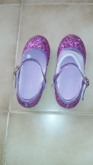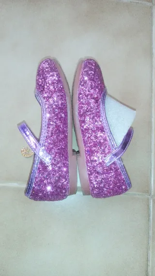 Deliziose scarpette da bambina, perfette per occasioni speciali. - Taglia 25 - Glitter viola scintillante - Chiusura con cinturino e fibbia - Interno in materiale morbido