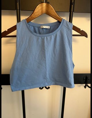 Top corto azzurro di Zara per bambina. - Girocollo. - Senza maniche. - Orlo a costine.