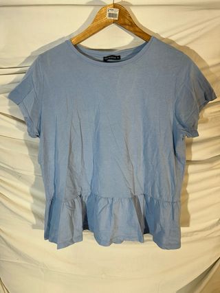 T-shirt Terranova a maniche corte con volantino sul fondo. - Colore azzurro. - Taglia XL.