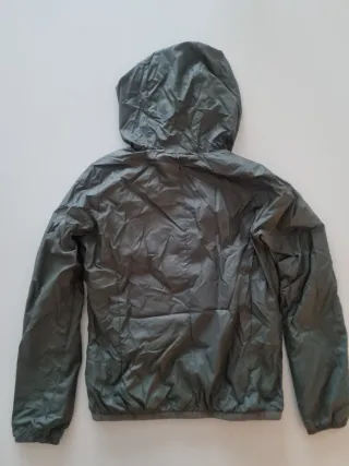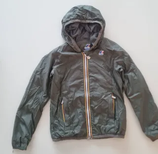Giacca K-Way antivento, perfetta per proteggersi dalle intemperie. Internamente rivestita con tessuto flanella caldo. Giacca originale K-Way quasi nuova usata pochissimo, pagata 120€. Di colore verde salvia. - Cappuccio integrato. - Chiusura con zip. - Tasche laterali con zip. - Logo K-Way sul petto.
