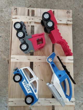 Set di costruzioni per bambini, ideale per stimolare la creatività marca Megablock in ottime condizioni - Include un personaggio. - Veicolo giallo e arancione. - Pezzi colorati per il gioco.