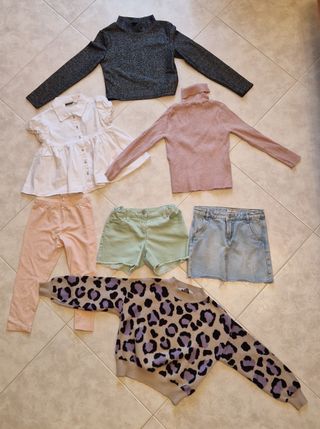 Lotto composto da 7 capi di abbigliamento per bambina, adatti per le taglie 6, 7, 8 e 9 anni. nr. 1 maglioncino Primigi taglia 7 anni nr. 1 gonnellina OVS taglia 5-6 anni nr. 1 pantaloncino Benetton taglia 6-7 anni nr. 1 leggins taglia 8 anni nr. 1 maglioncino giro collo Zara taglia 9-10 anni nr. 1 camicetta Sarabanda taglia 7 anni nr. 1 maglioncino Terranova taglia 8-9 anni