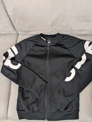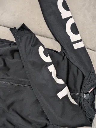 Maglietta sportiva Adidas nera per bambino/a. Zip frontale. - Logo Adidas sulle maniche.Adidas Giacca Sportiva Nera - Taglia 9-10 Anni (140) - Come Nuova! 🔥 Perfetta per lo Sport e il Tempo Libero con Stile Iconico! Metti in vendita questa splendida giacca sportiva Adidas originale, come nuova e usata pochissimo. Ideale per bambine/i di 9-10 anni (taglia 140). Caratteristiche Principali: Design Accattivante: Colore nero lucido (effetto acetato) con l'iconica scritta Adidas a grandi caratteri bianchi sulle maniche per un look sportivo e di tendenza. Materiale Ideale per Ogni Stagione: Realizzata in tessuto tecnico acetato nero