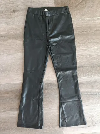 Eleganti leggings neri con un design a zampa. - Materiale effetto pelle lucido. - Vita alta. - Gamba svasata.