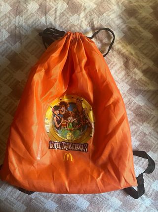 Zainetto da collezione McDonald’s del 2018, a tema Hotel Transylvania 3. - Colore arancione vivace. - Chiusura con coulisse. - Stampa del logo McDonald’s e dei personaggi del film