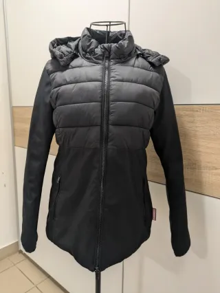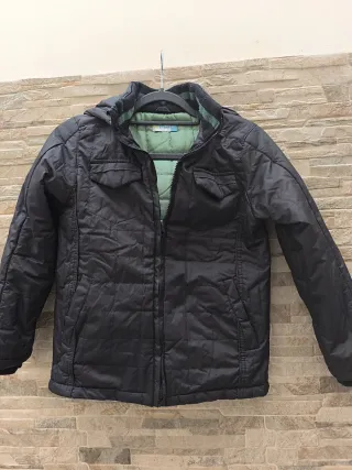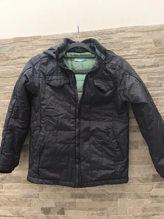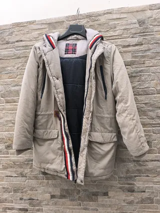 Caldo giubbotto invernale per bambino, taglia 10 anni. Perfetto per le giornate più fredde. larghezza 0.47 lunghezza 0.63 manica 0.50 - Cappuccio con dettagli a righe. - Chiusura con zip. - Tasche frontali. - Fodera interna imbottita.