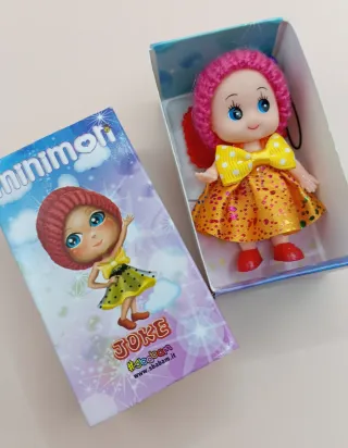 In confezione originale Disponibili altri soggetti della collezione Ogni scatolina/lettino contiene una Minimon con il suo campanello, il cuscino, il minibook e il cordino portachiavi