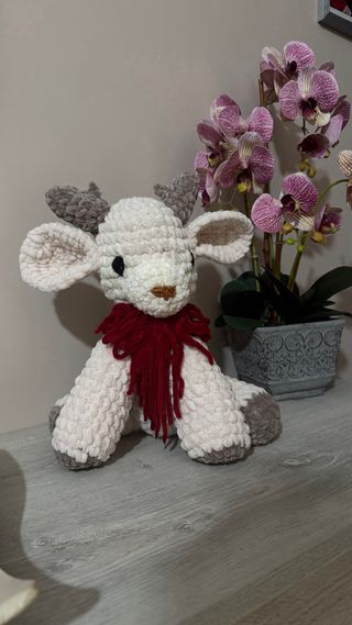 Un adorabile peluche realizzato all'uncinetto con filato di ciniglia, perfetto per decorare o come compagno di giochi. - Morbido filato di ciniglia. - Design unico fatto a mano. - Dettagli curati. altezza 50 cm