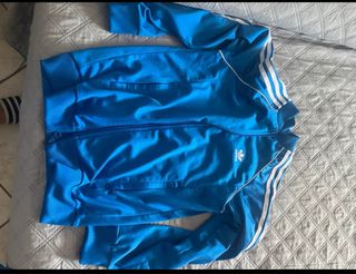 Tuta sportiva Adidas da ragazzo, colore blu brillante con le classiche tre strisce bianche sulle maniche. - Logo Adidas sul petto. - Zip frontale. - Tasche laterali con zip.