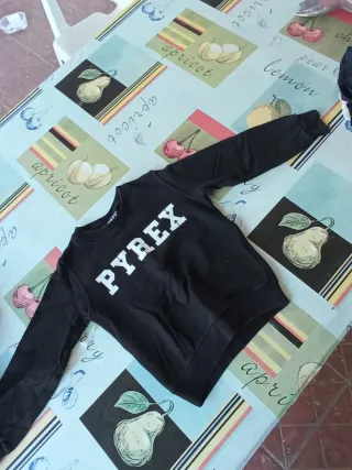 Felpa nera Pyrex per bambini, con logo bianco sul davanti Taglia s bimbo qualche difetto come in foto - Girocollo - Maniche lunghe - Polsini e fondo elasticizzati