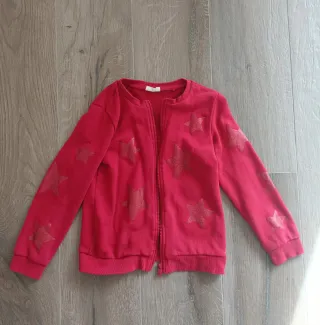 Felpa con zip e stampa di stelle. - Colore rosso vivace. - Maniche lunghe. - Orlo e polsini a costine.