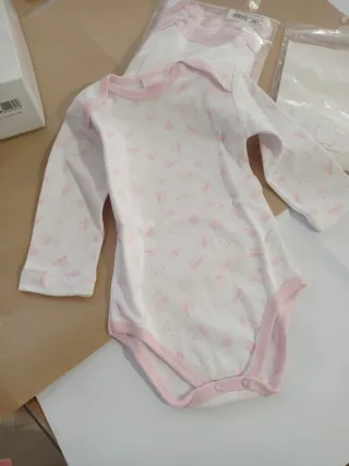 Set di 3 body in cotone caldo per bambina, ideali per la stagione fredda. - Maniche lunghe. - Taglia 12 mesi. - Fantasia con orsetti e cuori rosa. - Bordi rosa. - Chiusura con bottoncini sul cavallo.