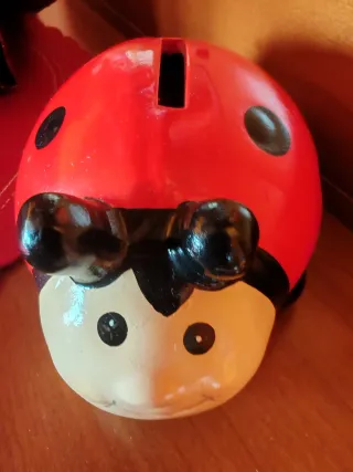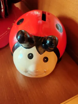 Salvadanaio a forma di coccinella, un simpatico accessorio per conservare i risparmi. - Colore rosso vivace con dettagli neri. - Design a forma di coccinella. - Apertura per inserire le monete.