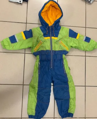 Tuta da neve per bambino marca Tik&Tak, adatta per circa 4 anni. Perfetta per le giornate sulla neve. - Colore principale blu con inserti verdi. - Cappuccio foderato in giallo. - Zip frontale e tasche con zip. - Polsini elasticizzati. Non ha strappi ne usura. Ottima usata un giorno
