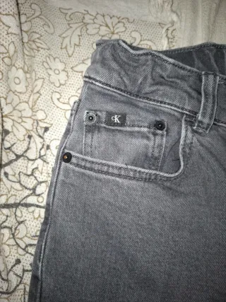Jeans grigi per ragazzo firmati Calvin Klein. - Logo Calvin Klein sul taschino. - Dettagli con bottoni.