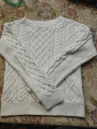 Maglione a trecce in 100% cotone, colore bianco sporco. - Design con lavorazione a trecce. - Scollo rotondo. - Maniche lunghe. - Polsini e fondo a costine.