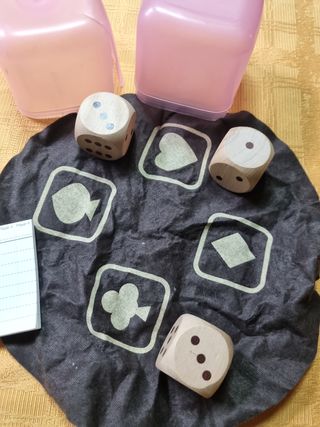 gioco da tavolo con dadi, semi delle carte, con libretto segnapunti, non so come si chiama, Lindt. contenitore rotto da un lato nuovo mai guocato