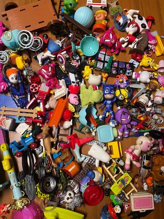 Lotto misto di giocattoli per bambini di varie forme e colori. Ideale per stimolare la creatività e il divertimento. - Personaggi colorati. - Veicoli giocattolo. - Accessori assortiti