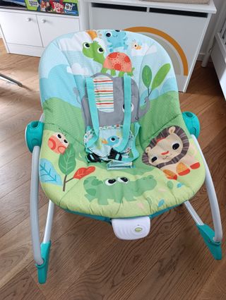 Il seggiolino vibrante può dondolare o essere stabilizzato in posizione fissa. Due posizioni di reclinazione. Seduta sfoderabile e lavabile in lavatrice. L'arco giochi si rimuove per un facile accesso al bambino. Tappetino incluso (es. per tummy time). Per bambini da 3 a 18kg.