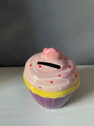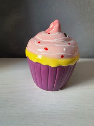 Salvadanaio decorativo realizzato in ceramica lucida e smaltata che riproduce un cupcake con viola e rosa pastello. •Funzionalità: Perfetto per l’inserimento di monete e banconote grazie all'ampia fessura centrale. •Condizioni: Utilizzato ma in perfette condizioni estetiche. Presenta solo la mancanza del tappo inferiore per l'estrazione dei risparmi (come mostrato in foto), facilmente sostituibile con un tappo universale. •Stile: ideale per camerette o come regalo originale. 📦 Spedizione disponibile con qualsiasi corriere (con InPost l’invio avviene nello stesso giorno dell’acquisto) | 📍 Consegna a mano possibile a Busto Arsizio