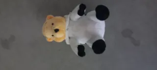 Pupazzo di Winnie the Pooh travestito da mucca. Un simpatico peluche che unisce due personaggi amati. - Morbido al tatto. - Dettagli curati.