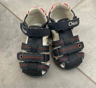 Sandali da bambino Chicco, perfetti per le giornate estive. - Colore blu navy con dettagli rossi. - Chiusura con velcro. - Numero 18.