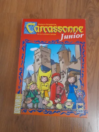 Gioco da tavolo Carcassonne Junior, impeccabile, completo, con tutte le istruzioni. È un gioco fantastico per giocare con i bambini, ci siamo divertiti molto e ora stiamo giocando a Carcassonne normale. Lo consiglio.