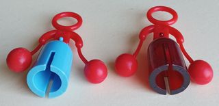 Due Campanellini Sonaglini plastica. Vintage. La loro sonorità attira moltissimo l'attenzione dei piccoli. Divertenti per i piccoli... utili anche ai grandi. Altezza 7,5 cm.