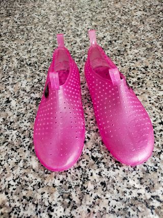 Comode scarpette da mare per bambina, perfette per proteggere i piedi. - Materiale trasparente rosa. - Design con fori per il drenaggio dell'acqua. - Logo Sport sul lato.