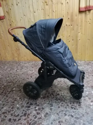 Carrello per bebè della marca Jané, include culla. Colore blu e beige. Culla per neonati.