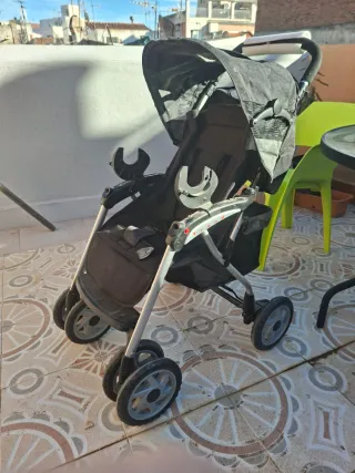 Passeggino per neonati in colore nero, ideale per passeggiate. Struttura leggera e pieghevole. Capottina regolabile. Ruote per ogni terreno. Include: supporto per la schiena, copertura solare, protezione anti-pioggia e cestino portaoggetti. In perfette condizioni, necessita solo di una pulizia (per il poco utilizzo). Per maggiori informazioni contattare il numero +34 670 68 59 71.