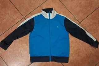 Giacca sportiva Domyos per bambino/a. - Colore blu con inserti bianchi e neri. - Zip frontale. - Collo alto.
