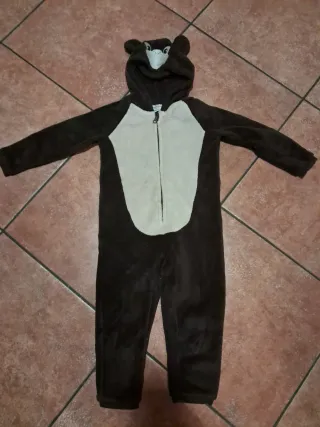 Morbida tutina a tema orsetto per bambino/a, perfetta per la notte o per giocare. - Taglia 3/4 anni. - Chiusura con zip frontale. - Cappuccio con dettagli orecchie da orso. - Fantasia bicolore marrone e beige.