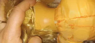 Bambola Cicciobello che fa la pipì. - Indossa una tutina azzurra con un coniglietto bianco. - La tutina ha maniche verdi. - Ha i capelli biondi e gli occhi azzurri. Funziona se vengono leggermente inumiditi i sensori sotto al culetto e comincia a piangere Non fa il culetto rosso