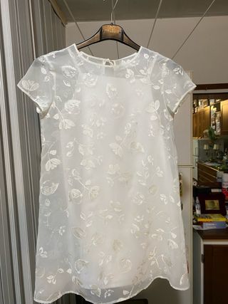 molto bello , tipo organza , con sottabito con cerniera laterale , tipo raso. indossato una volta . misure come da foto