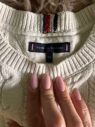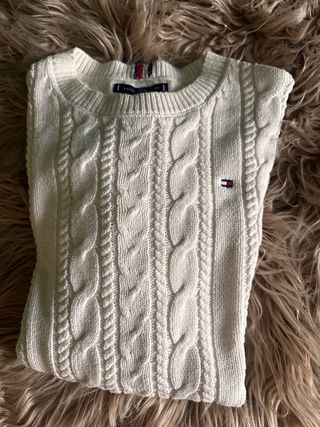 Maglione in maglia a trecce di colore bianco. - Logo Tommy Hilfiger - Scollo rotondo. - Polsini e fondo a costine. Veste 14-16 unisex
